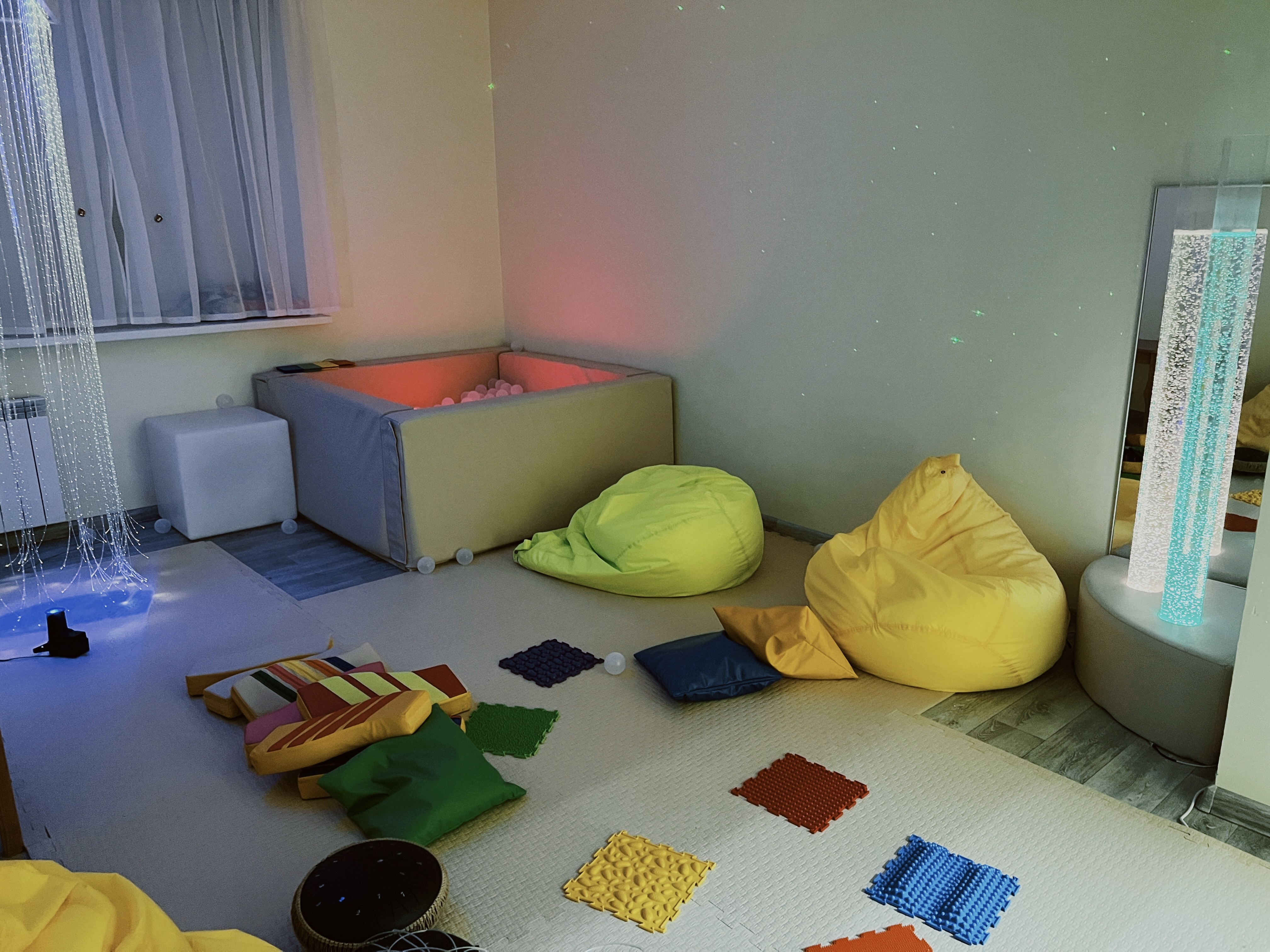 Сенсорная комната — это специально организованная среда, воздействующая на зрение, слух, тактильные ощущения и вестибулярные рецепторы. Она помогает снижать стресс и эмоциональное напряжение, развивать внимание, моторику и когнитивные навыки.