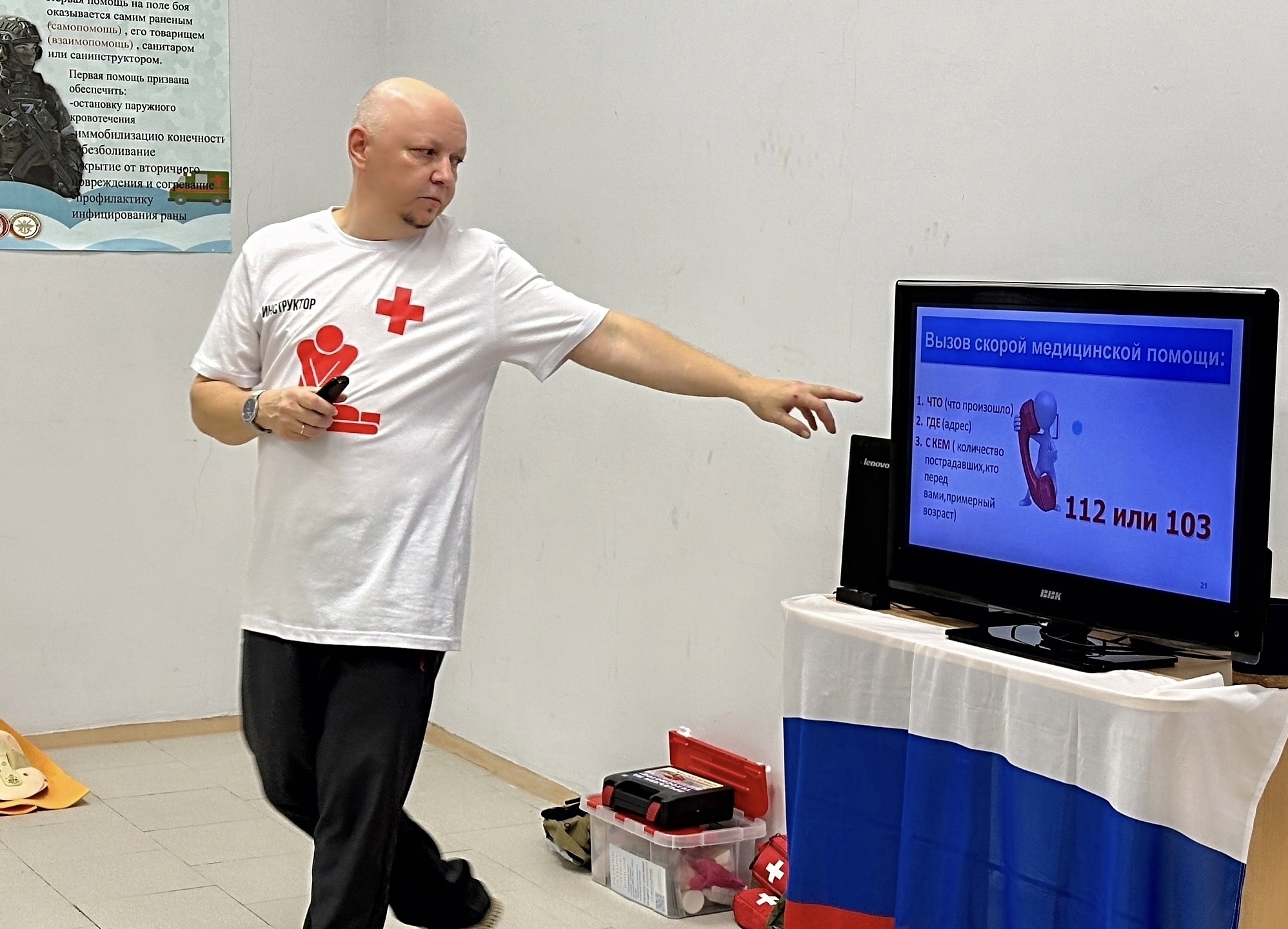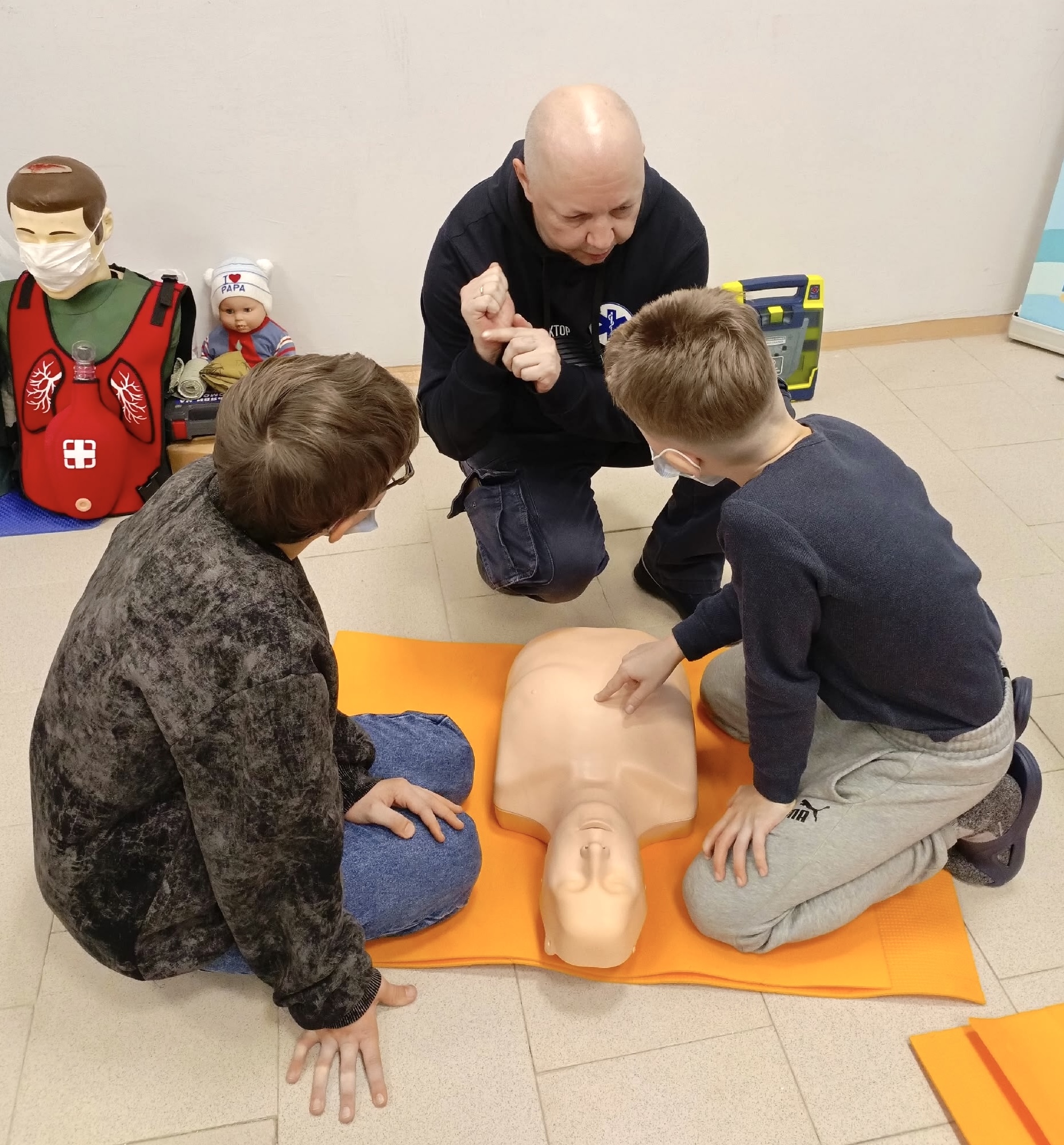 инструкторами продемонстрируют базовые приемы оказания первой помощи, а все